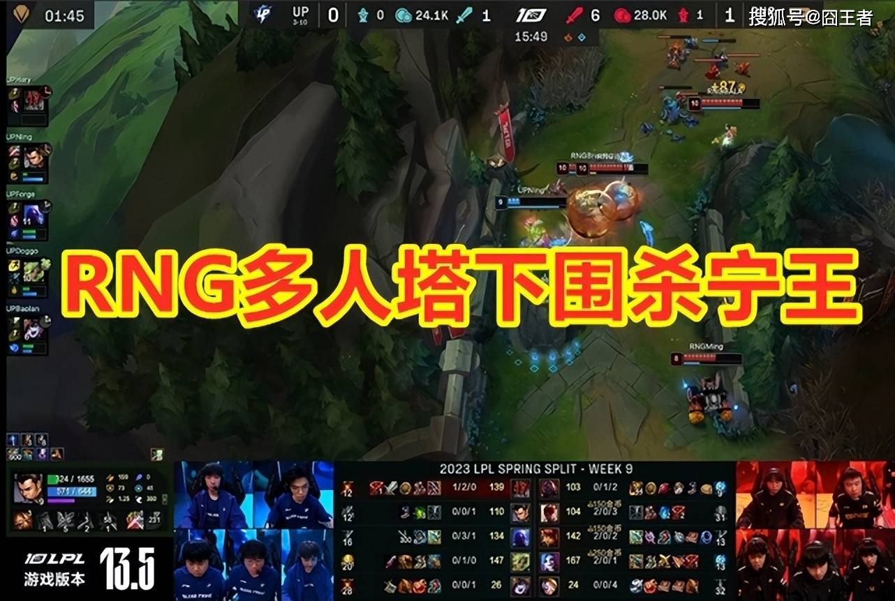 第一局比赛,UP被RNG在30分钟内,打了个零龙塔。这种零龙塔的比赛,囧王者觉得压根没有复盘的必要。大家只需要知道一点,宁王和宝蓝已经成为了对面战队的突破口就行了!