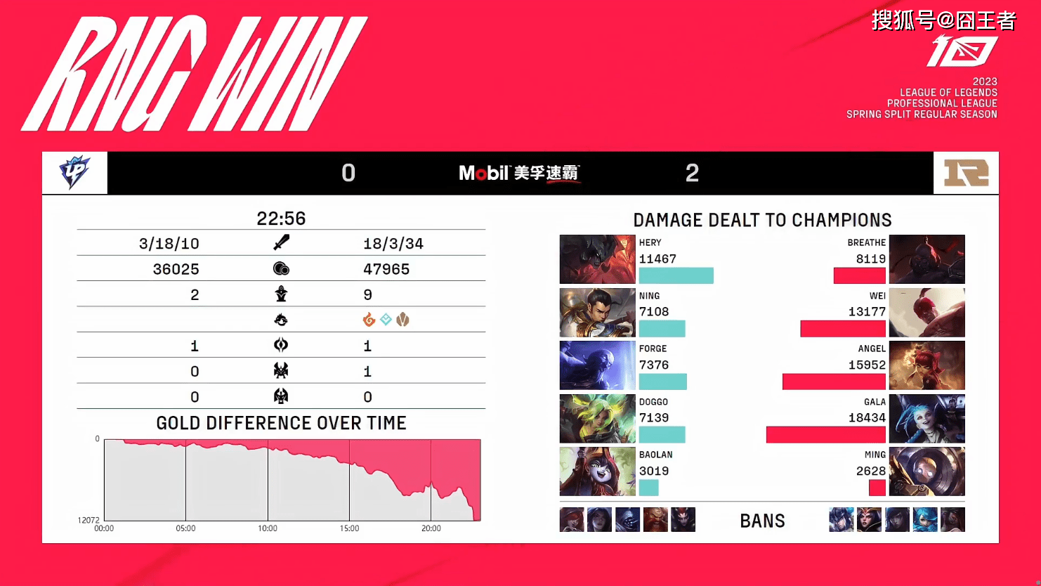 如果说第一局比赛,UP还坚持了28分钟的话,那么第二局比赛的UP则是连23分钟都没有坚持到,就被RNG迅速的在22分56秒,结束了战斗。而且这第二局比赛中,宁王和宝蓝,更是多次线上“名场面”。更甚者,RNG在中期,一度放弃了推高,四人在塔下围剿宁王。从这里,我们不难看出,宁王和宝蓝,打得是有多么的菜了!
