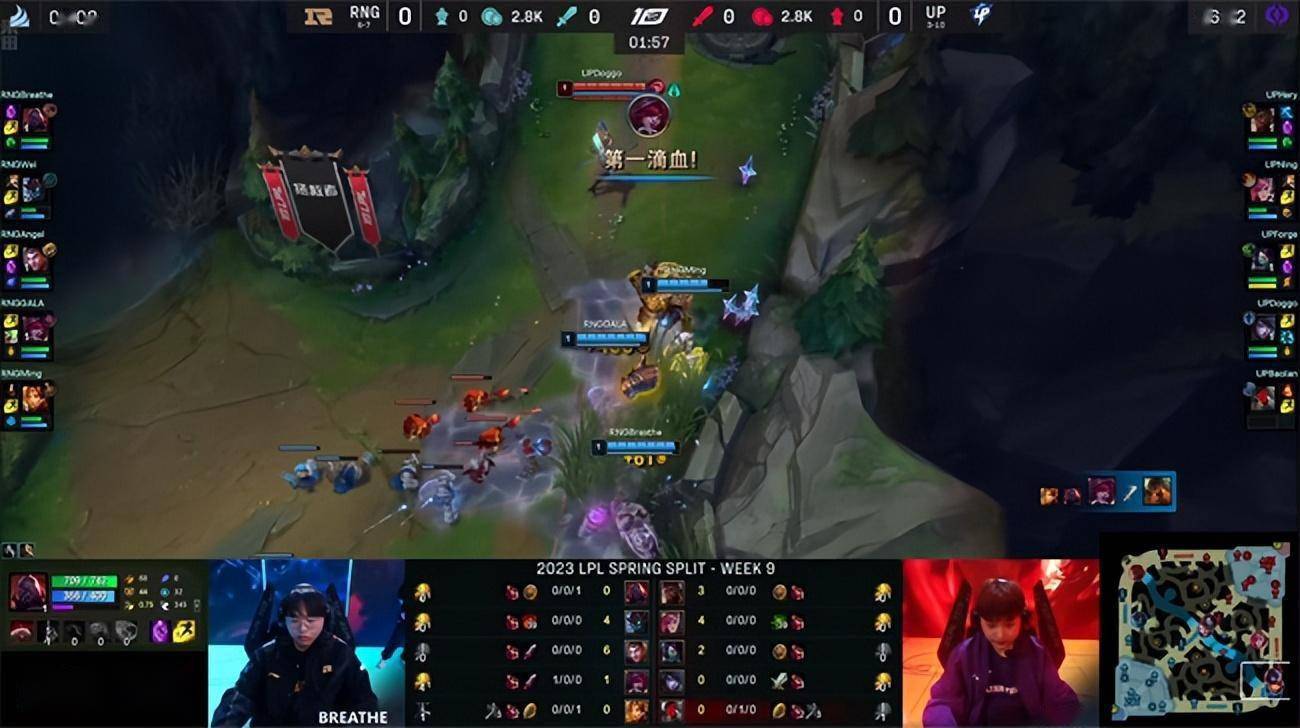 LOL-LPL:Breathe不死赛恩峡谷飙车撞翻后排,RNG 2-0送给UP六连败
