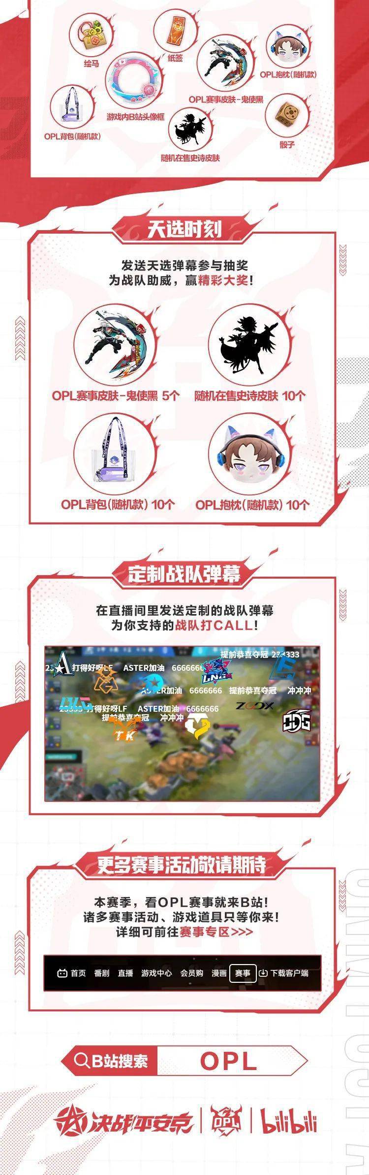 观赛有礼:线上观看OPL比赛,游戏皮肤、周边等精美礼品等大人来拿。