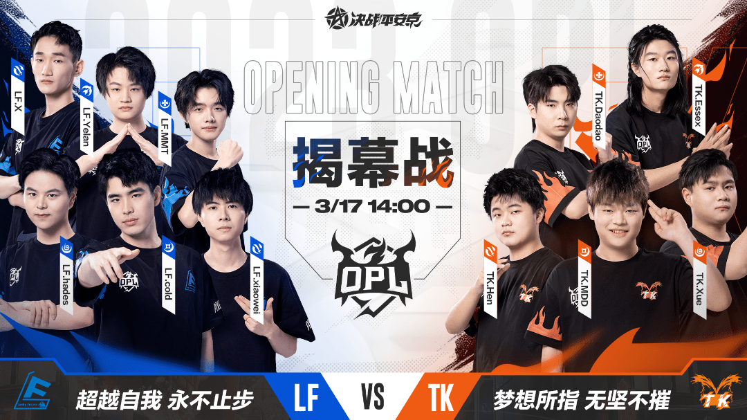 揭幕战将由 LF电子竞技俱乐部对阵 TK电子竞技俱乐部