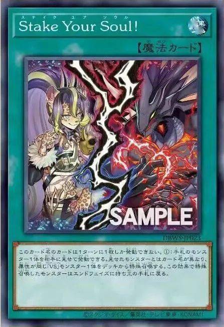 这个卡名的卡1回合只能发动1张。①:可以向对手展示手牌的1只怪兽发动。从卡组特殊召唤1只与展示的怪兽卡名不同、属性相同的「VS/征服之魂」怪兽。用这个效果特殊召唤的怪兽在结束阶段返回持有者的手牌。
