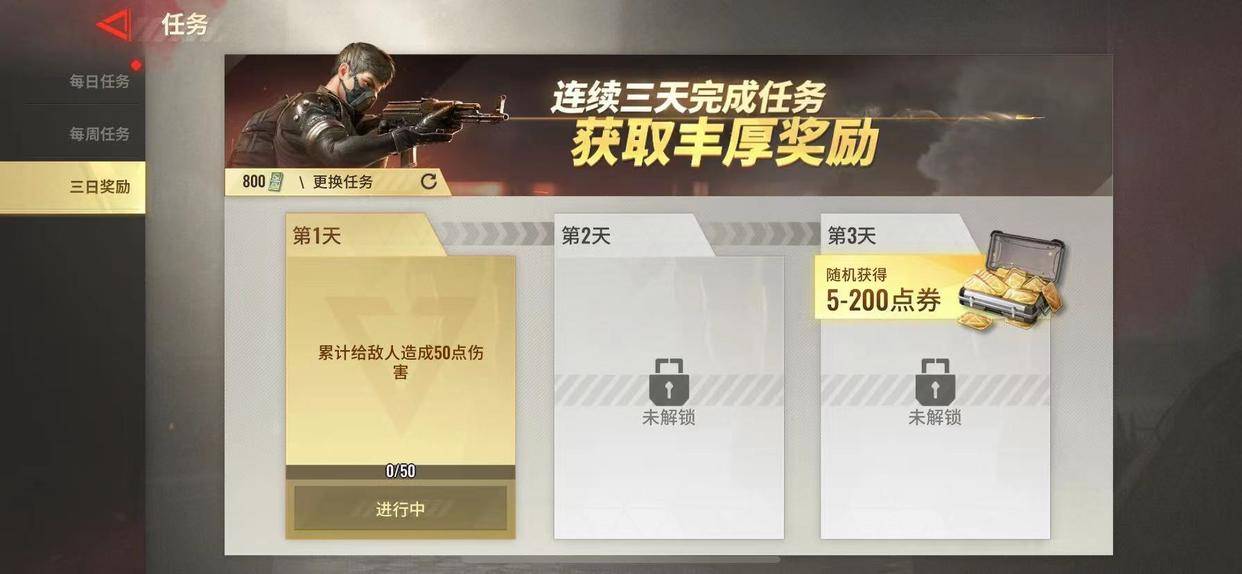 1、通过完成任务,每天在游戏中发布日常任务。完成任务可以获得很多奖励,其中经验金币是常见的*,有时还会获得一些有限的奖励,如枪械、武器和护甲。除了日常任务外,还有一些主线和子任务,每个级别都会有具体的任务,完成后就可以领取奖金。