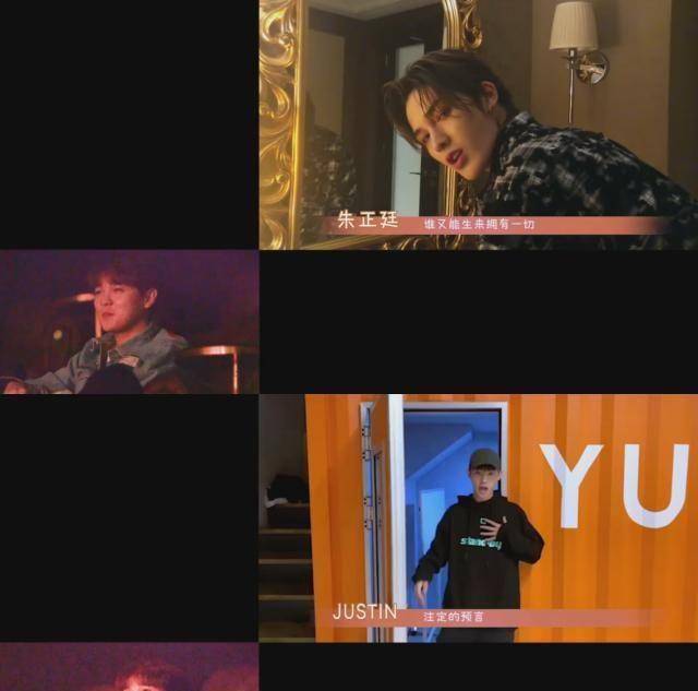 朱正廷的设定是对着镜子转头看着镜头“唱”出歌词,依旧帅气如初。但是接下来的黄明昊又走搞笑路线了。看着这一幕,他仿佛就在乐华的修炼室里。推门的黄明昊正“唱”着自己的歌词,却被反弹的门撞到了。他被撞退了几步,站定后坚持摆出帅气的姿势。NPC们一一搞笑的表演也让大家捧腹大笑。