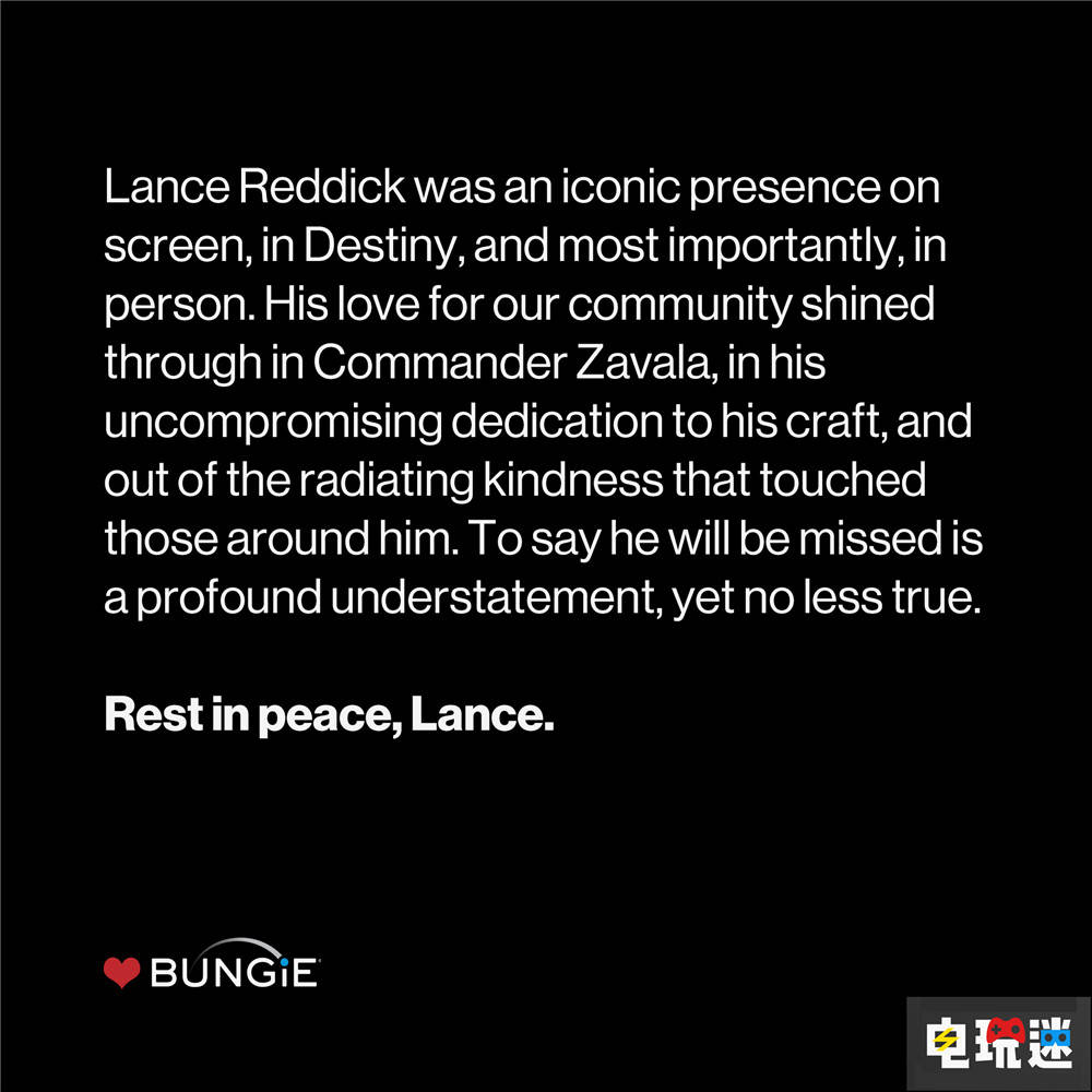 在《命运2》中玩家们开始集中在高塔的萨瓦拉身边悼念兰斯·莱迪克,同时Bungie也发布了悼词纪念这位“对自己技艺毫不妥协”的人。虽然“光头指挥官”在游戏中基本上扮演了“将军,十松庄的马桶又堵了”,作为游戏的核心角色之一,萨瓦拉陪伴玩家们走过了四年多的游戏时光。没有想到5月上映的《疾速追杀4》与预定在4月份推出的《地平线 西之绝境》DLC“燃烧海岸”就是他的最后之作了。