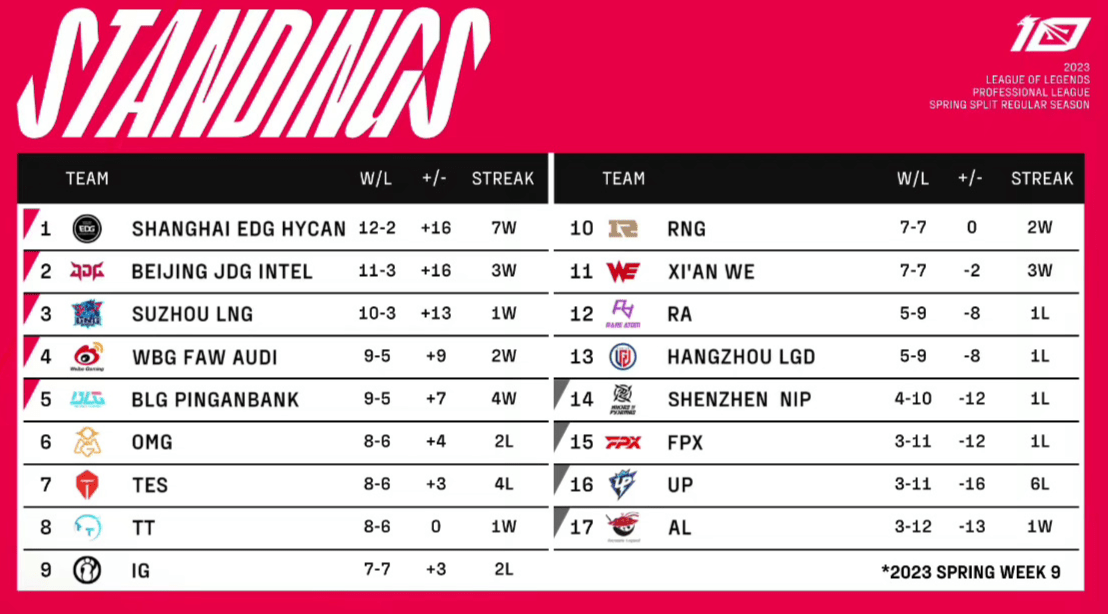 结果,春季赛打着打着,也不知道TES出了啥问题,实力状态急剧下滑。眼看就差一场可以锁定季后赛,TES是打不赢JDG和LNG,也欺负不了LGD和TT。