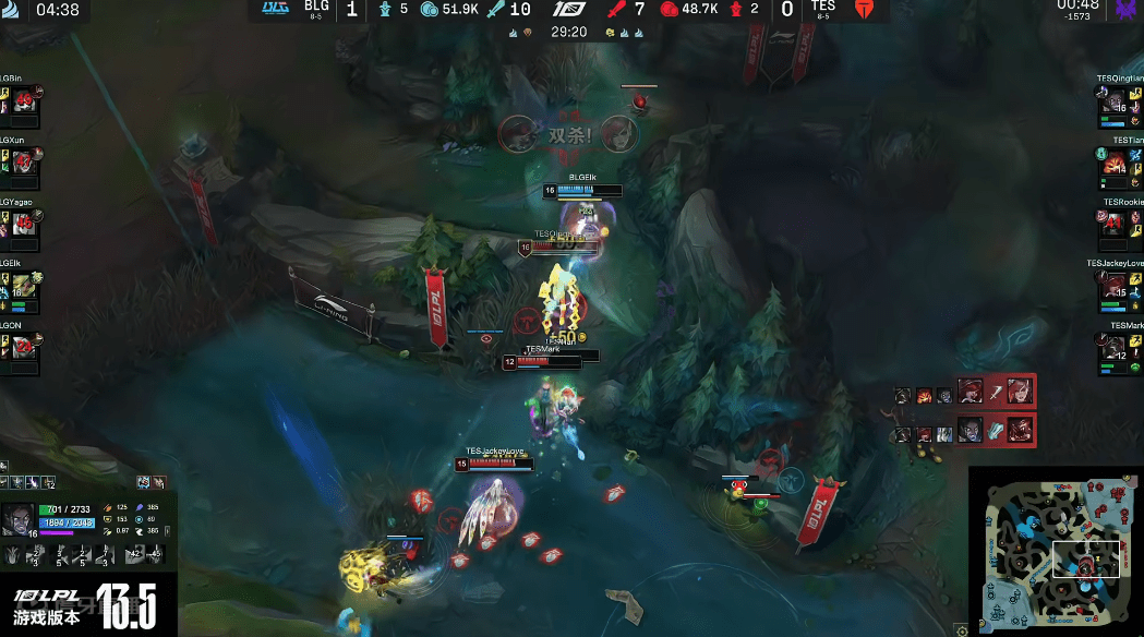中期打团TES也确实是在冲ELK,但ELK的状态出奇的好,把泽丽运营到极致,一打四都能反杀TES三个人,直接把TES打得没了心气,最终BLG靠着ELK的发挥,提前下班,锁定季后赛门票。