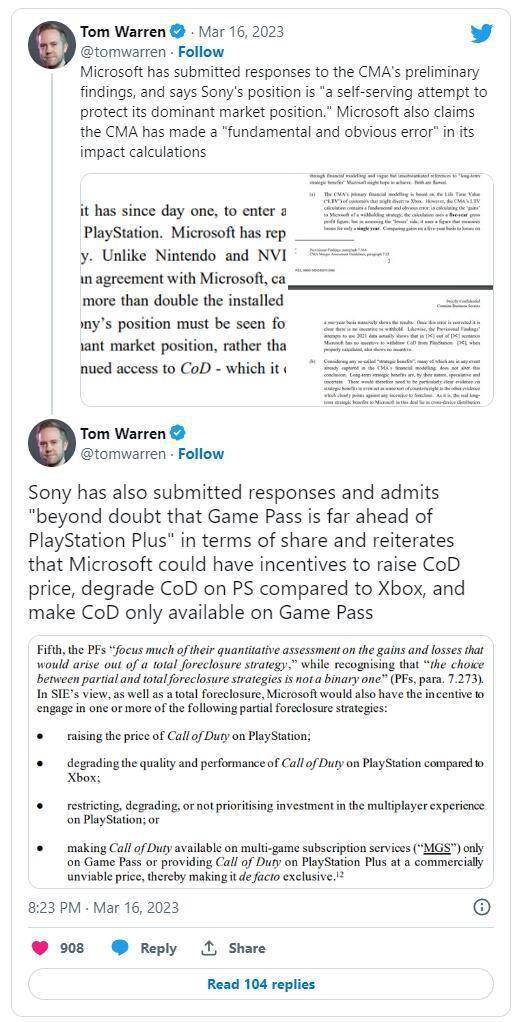索尼在最近提交给CMA的回应中承认了这一点,与此同时,微软也就其收购动视暴雪受到调查的情况进行了回应。