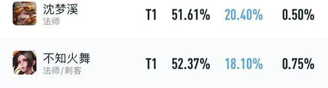 以上是沈梦溪在顶端局的数据,不仅出场率高达20.4%,胜率也接近52%,直接超越了不知火舞,成为了海月之后的次选位。