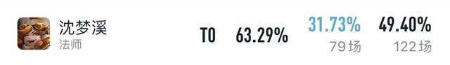 不仅如此,在KPL里,沈梦溪的数据同样夸张,不仅出场率排名第一,胜率还有63.29%,属于独一档的法师,也经常会被职业选手一楼抢下来。