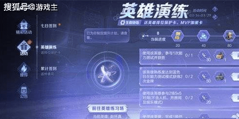 活动规则:选择英雄,完成任务累积演练积分即可获得英雄排位保护卡、英雄MVP加星卡、王者绝悟回城特效、英雄碎片等奖励