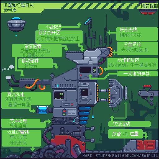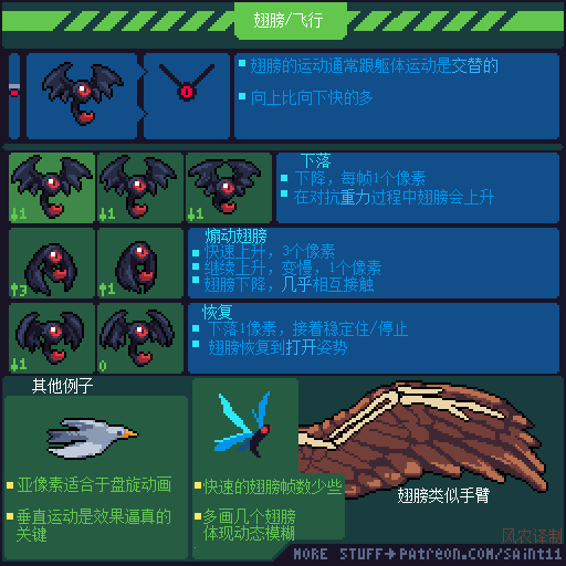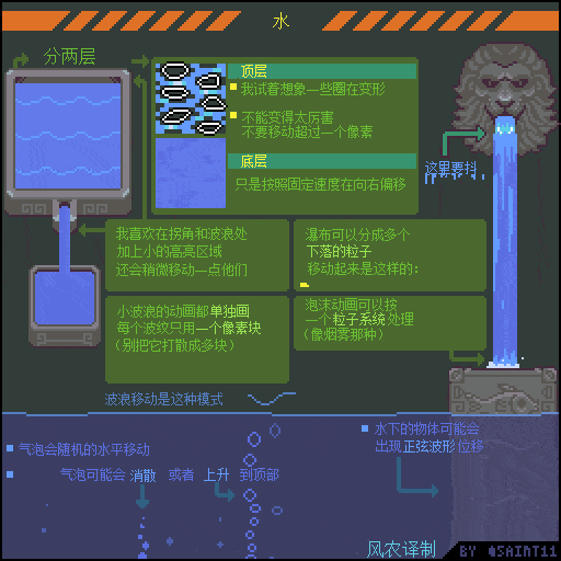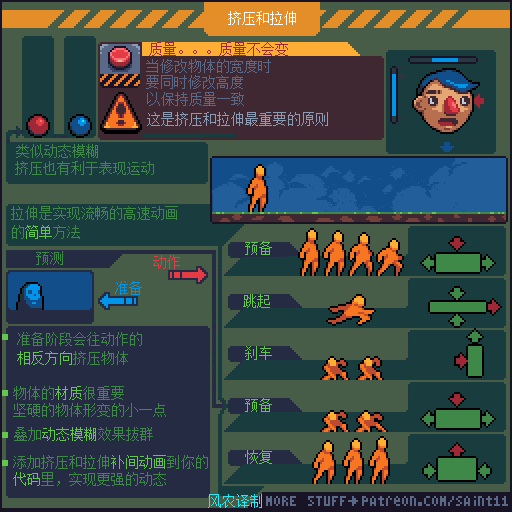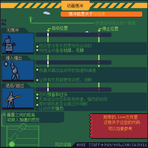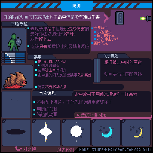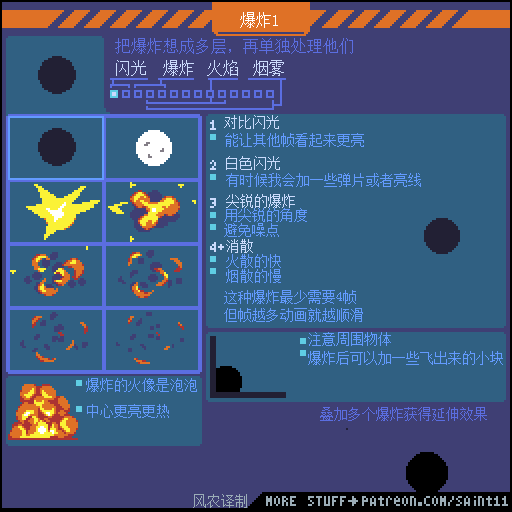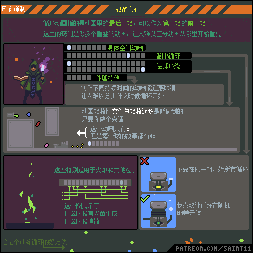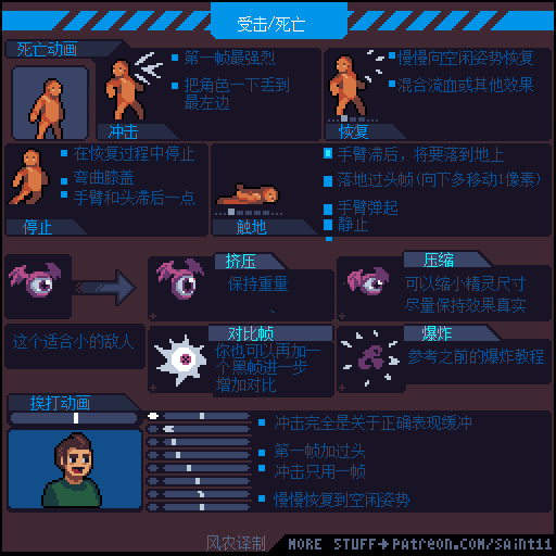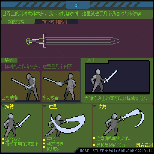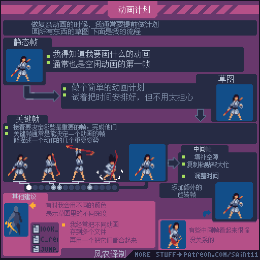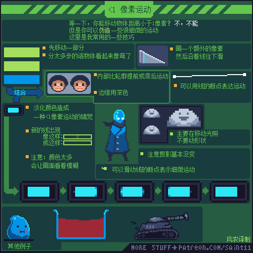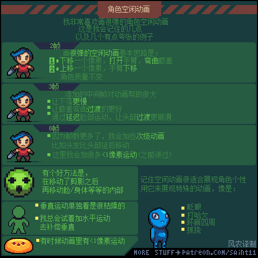 如果觉得动画播放的太快,想要更仔细研究的同学,可以通过电脑端访问上方原文链接,把 图片下载到本地硬盘再用 Photoshop或者 Aseprite打开GIF文件,就可以用时间轴一帧一帧的参考了。