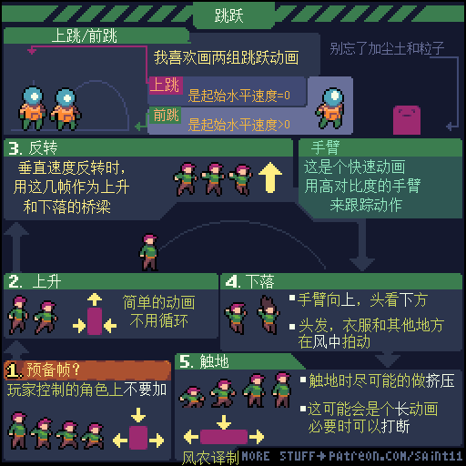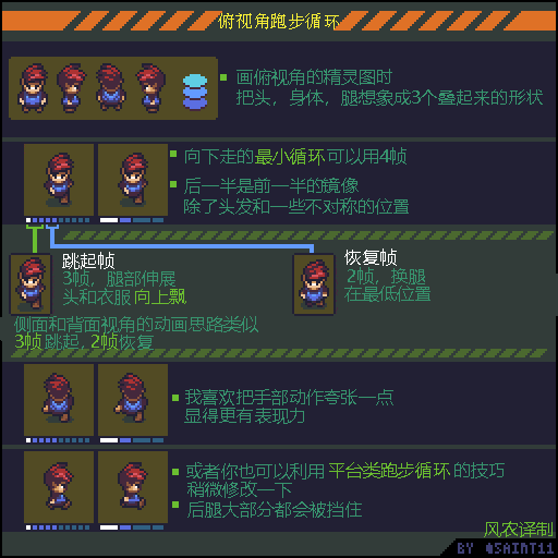 这种也完全OK。这里只是我能想到的最简单的方式,来做出适合平台跳跃类型的跑步动作。走/跑的动画很能体现角色的个性,所以会有无数种方式来做。