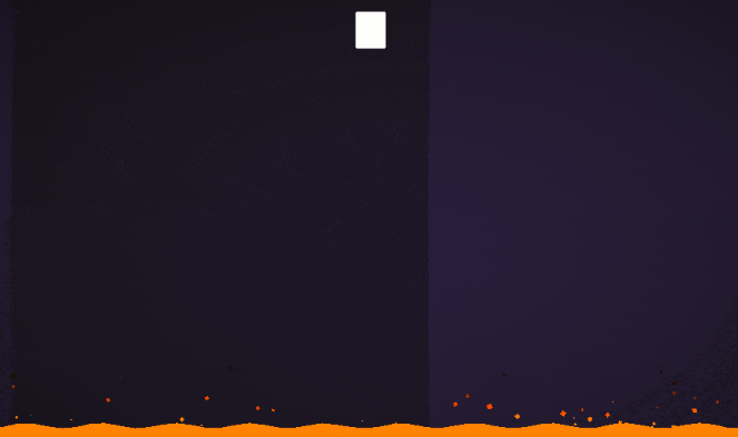 游戏简介:简单上头的小游戏。控制方块的下落方向,踩在飞来的蓝色方块上起跳,避免落入下方的岩浆中。