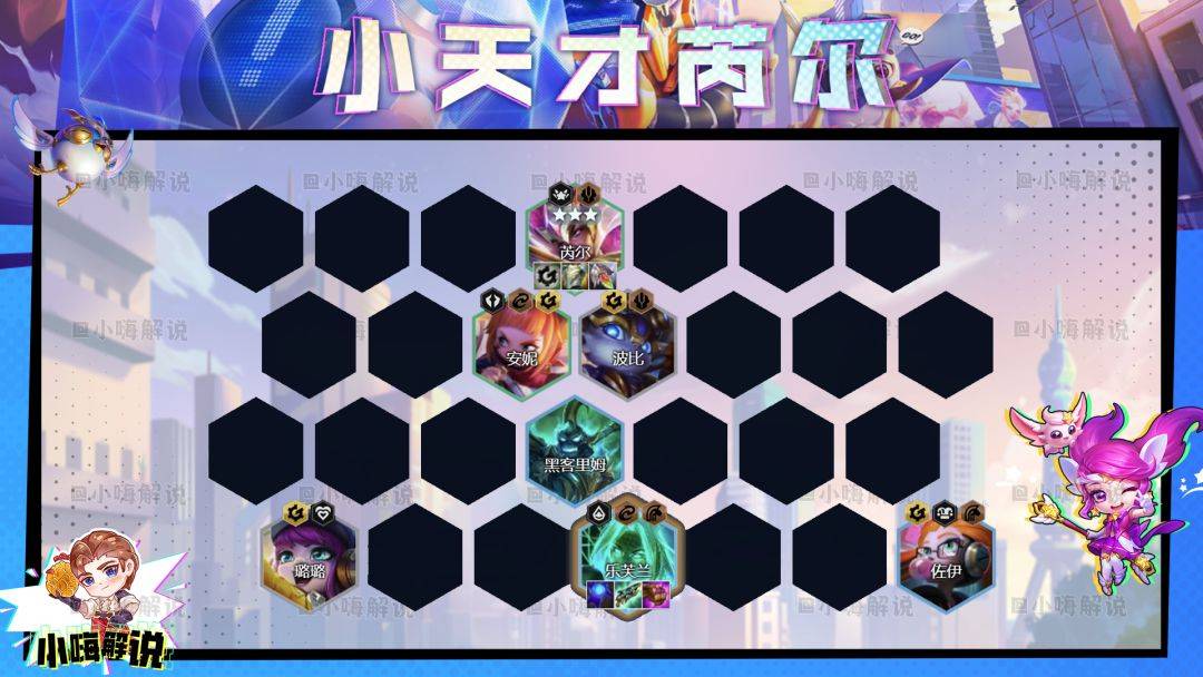 3阶段:3-2拉6人口,6人口小搜阵容优先找到5小天才2灵能2黑客。后续慢D3星芮尔,如果安妮来得多也直接拿了,3星优先级是芮尔>安妮>乐芙兰。乐芙兰如果卡钱,可以先不用追,优先把前排的坦度做好。