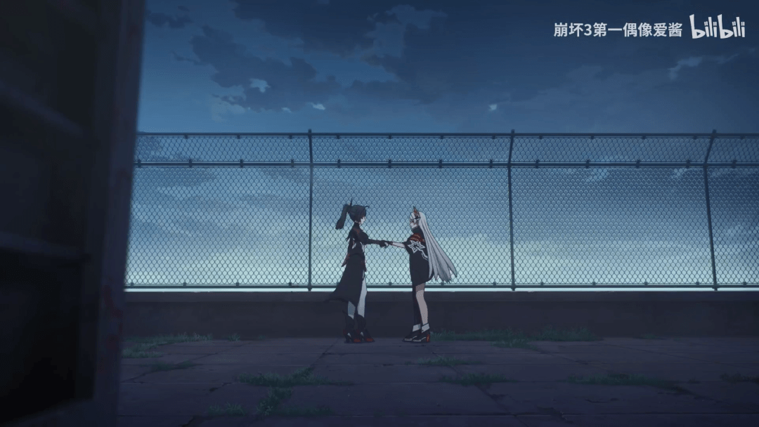 芽衣再次出现在天台上,与2020年短片《罪人挽歌》呼应