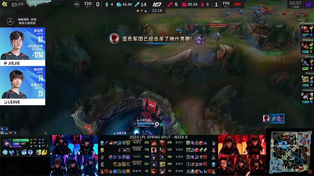 2023 LPL春季赛常规赛第九周第七日,FPX战队挑战目前联赛排名榜首的EDG战队,虽然本赛季FPX的状态十分起伏不定,而EDG正值七连胜,比赛的结果出乎了所有人的预料,FPX凭借中路和辅助出色的发挥鏖战三局,以2-1的比分爆冷终结了EDG的连胜。