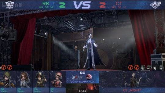 RB的求生者选择了舞女、“心理学家”、勘探员、佣兵;CT的监管者NIGHT选择了隐士。(BAN先知、古董商、祭司、调酒师)