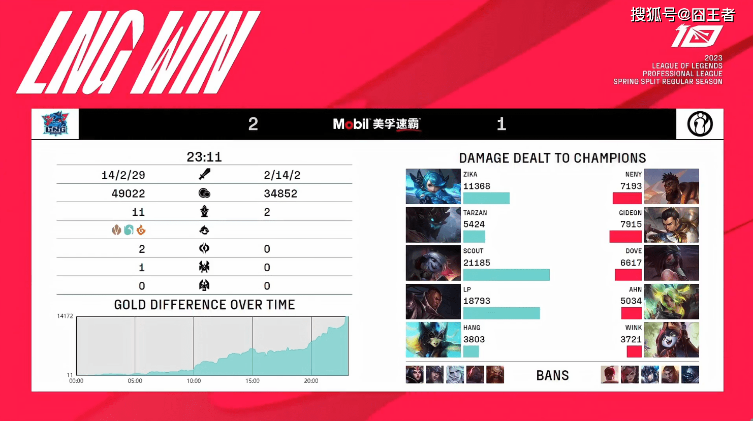 进入决胜局后,iG不负第二局的神勇,又回到了第一局的颓废状态。而LNG则是越打越勇,直接将第三局打成了人机局,在23分11秒内,轻松横推iG,斩获胜利。