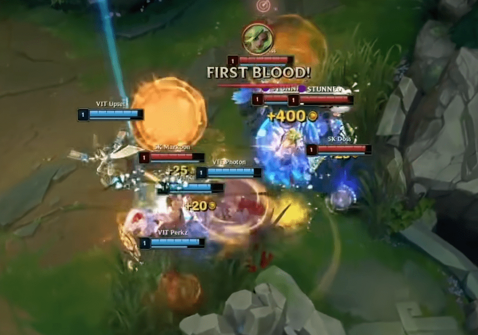 首先备受关注的自然就是Upset了,自从他加入VIT后就一直没打过逆风局,前三局都是对线期就把对面给打爆了,而这场比赛应该是他回归后首次劣势对线。 比赛刚开局双方五个人在下路相遇,SK蹲草快一步,Bo走在最前面给泽丽送出了一血,这对Bo来说影响并不大,但对下路来说可不太好受。