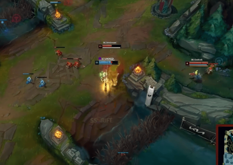 不过到了比赛的中期,VIT的上中两条单人线反而有点不对劲起来了。VIT这边的武器在单杀过一次纳尔后极度膨胀,看见纳尔就要上去打一套,在第三条龙刷新的前一刻也是这样,控制不住自己送了一个关键的。 好在后面Bo强行抢龙成功,让SK没能把节奏抢回去。