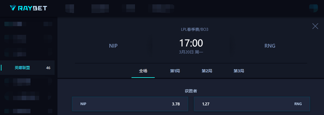 相比之下,NIP今年由于上中野三个位置都出现了换人的情况,导致竞争力与去年完全无法相比。Photic在去年虽然发挥出色,但是在今年队友的整体水平下降,需要自己站出来Carry比赛的时候,也很难站出来挽救队伍。两队纸面实力存在巨大差距的情况下,从赛前专业电竞预测平台给出的数据,RNG在这场比赛是以1.27稳占上风,只要延续最近的比赛状态,在当前版本他们的BP优势和选手实力都要强于NIP。