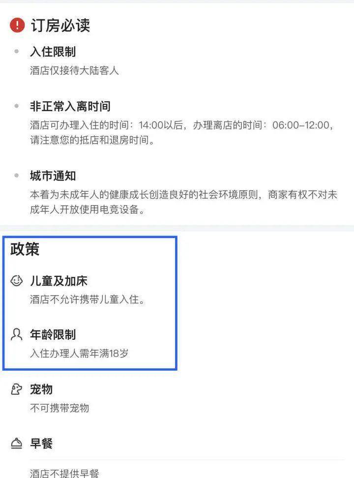 以中国传媒大学附近的电竞酒店为例,该酒店在OTA的“订房必读”中明确,酒店不允许携带儿童入住,入住办理人需年满18岁。然而,当记者致电前台,询问“是否可以带着16岁的孩子一起入住”时,前台表示,只要是家长陪同就没问题,只需带着家长和孩子的身份证,并向前台出示户口本或户口本照片便可以办理入住。