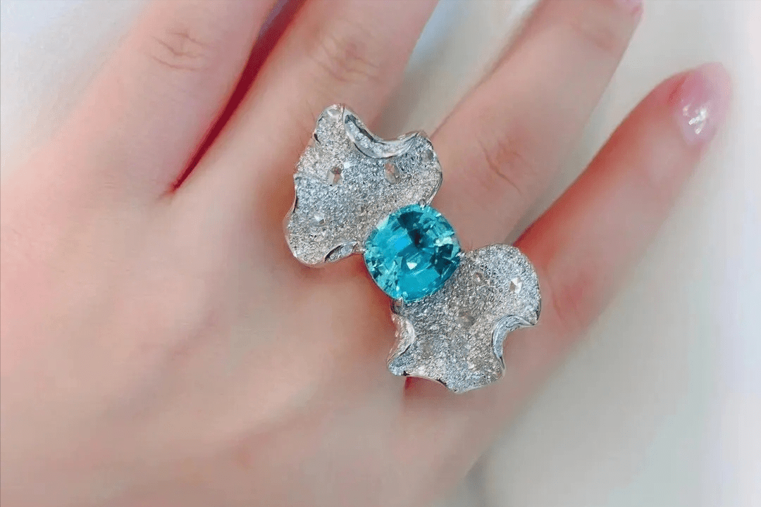 有没有不建议新手玩的宝石?有,帕拉伊巴,帕拉伊巴和帕帕拉恰一样,它有一个颜色比例的问题,有一些帕拉伊巴到手上去看,其实和海蓝宝的颜色差不太多,帕拉伊巴究竟是偏绿还是蓝,它的色彩倾向也会影响到价值的。