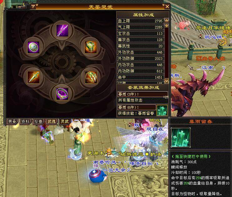 最后再来看看大家最感兴趣的灵武套装,我选择了全套搭配天剑木鱼套装。