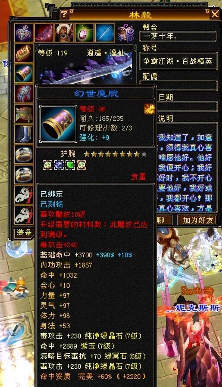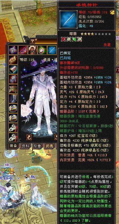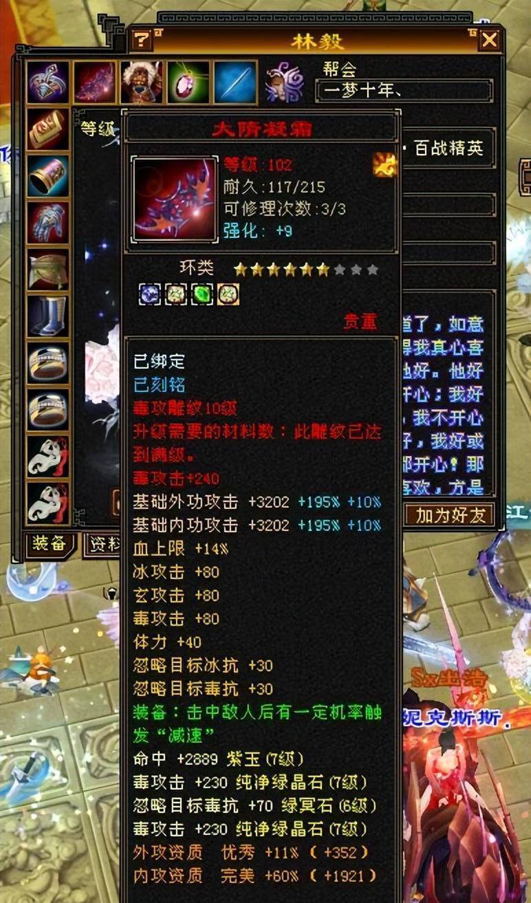 首先是深蓝色八星链。虽然不增加血量上限,但是火毒、体力、知识、防御等双属性176!