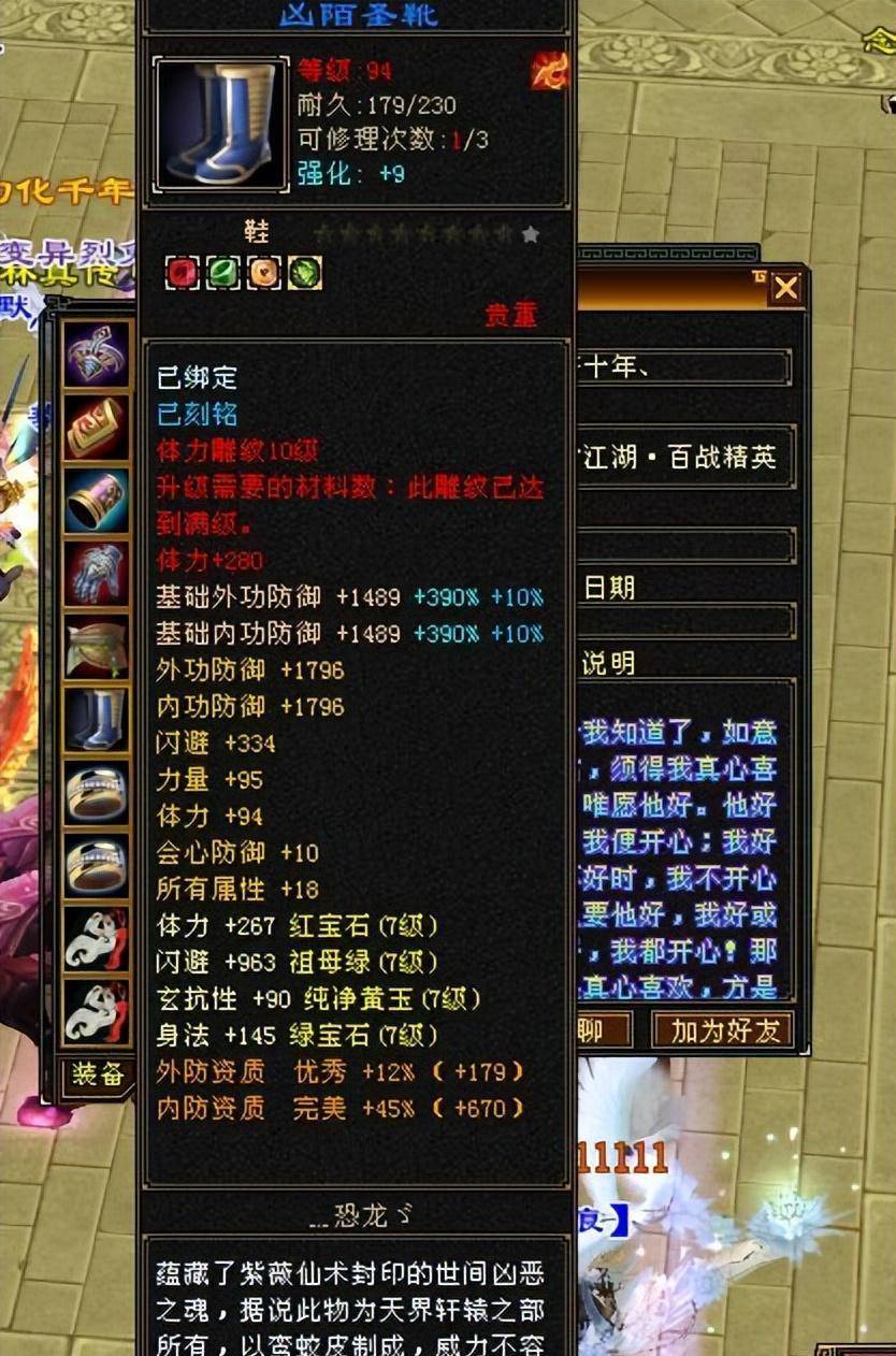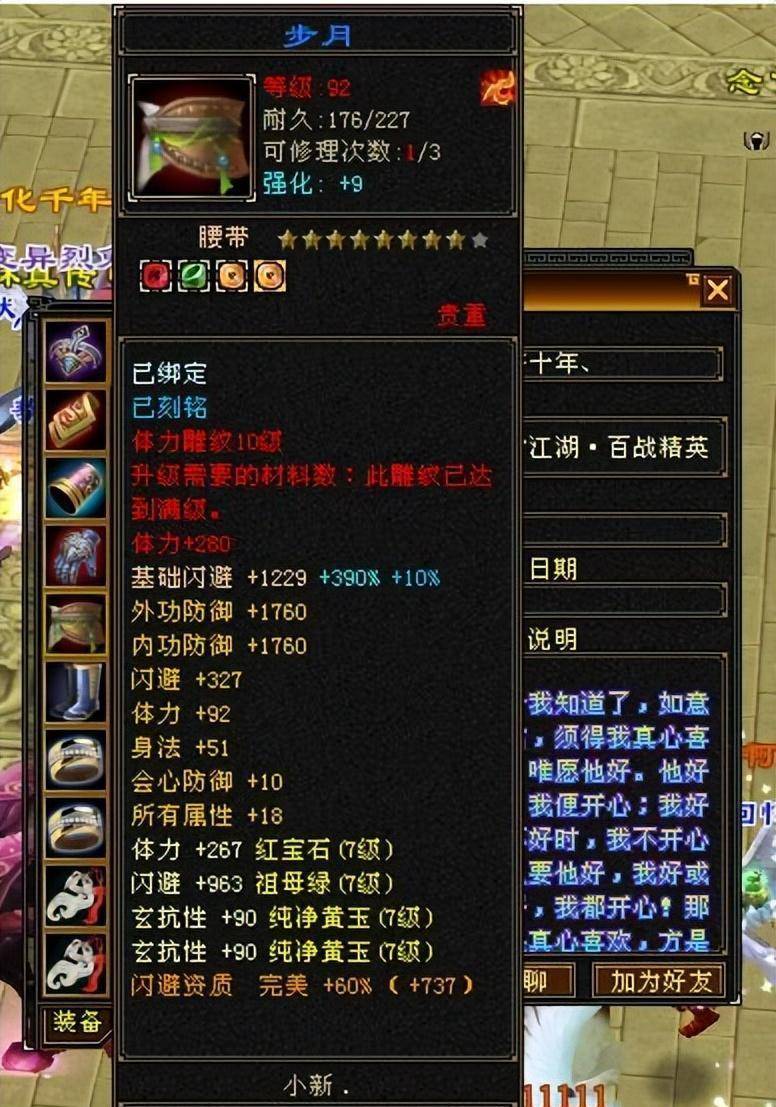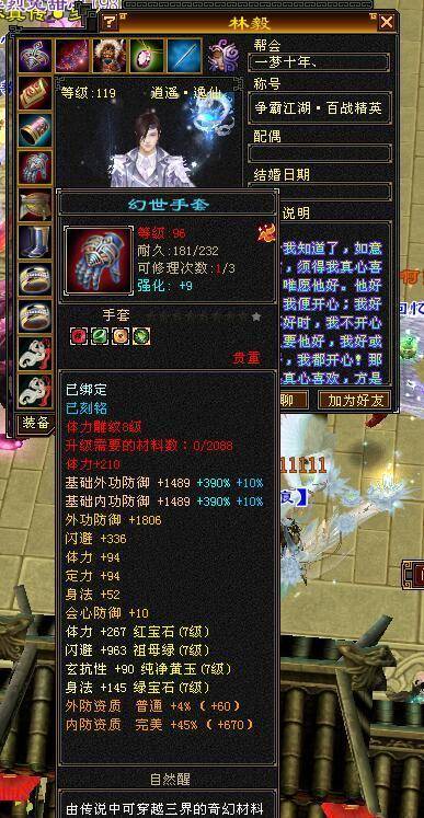 终于全功能了!一条深蓝色八星腰带,闪避、体力、敏捷、智力防御全属性。这个属性太长了!