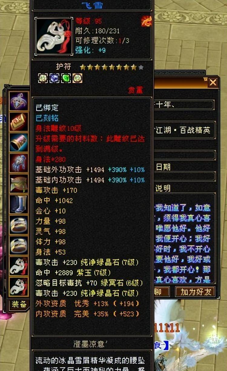 宝石7767颗,8级10级符文混搭,强化9级,细节虽然不完整,但也算是很不错了。