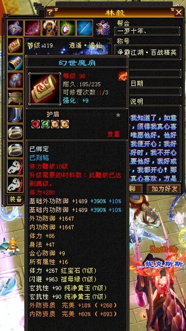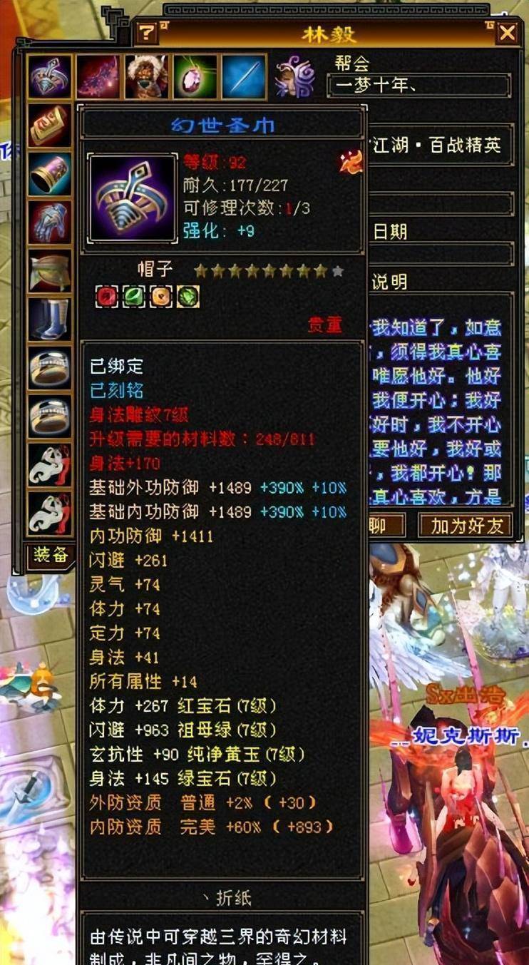 又一款极品血衣来袭,生命上限、闪避、力量、耐力、敏捷、知识防御!这套血色套装虽然不是深蓝色,但在整套套装中绝对是排在第一位的!