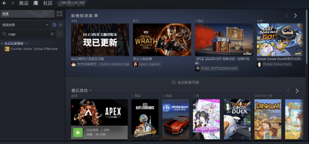 第二步:在steam中,玩家们启动CSGO,进入游戏主菜单。