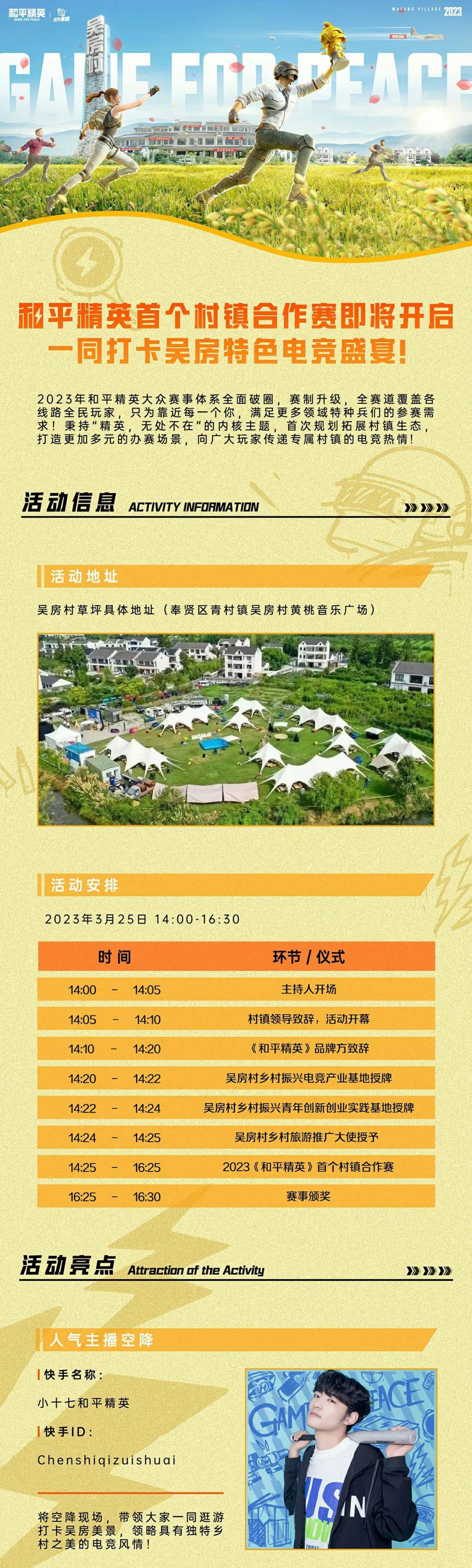 其中,生态外卡赛道作为新设赛道之一,秉持“精英,无处不在”的内核主题,首次规划扩展村镇生态-吴房村,与吴房村合作,打造更加多元的办赛场景,满足更多圈层的玩家参赛需求。