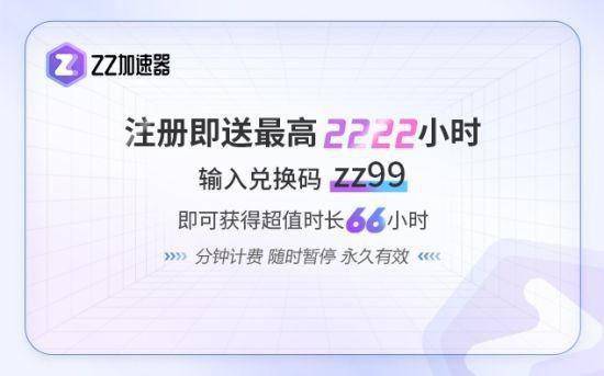 下载并打开ZZ加速器,点击右上角【设置】按钮,在【兑换口令】里输入口令:zz99,即可免费获得66小时时长,注册最高即送2222小时