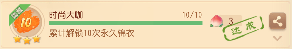 累计解锁10次永久锦衣,即可解锁隐藏成就【时尚大咖】。
