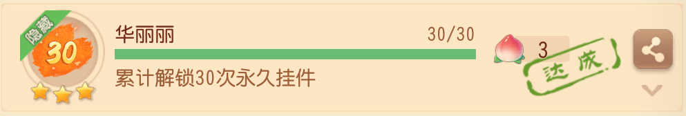 累计解锁30次永久挂件,即可解锁隐藏成就【华丽丽】。