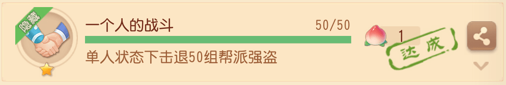在单人状态下击退50组帮派强盗即可解锁成就【一个人的战斗】。