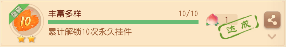 累计解锁10次永久挂件,即可解锁隐藏成就【丰富多样】。