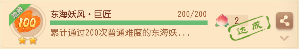 少侠可参与【东海妖风】副本,累计通过200次普通难度即可解锁成就【东海妖风·巨匠】。