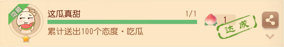 少侠在个人空间内累计送出100个态度·吃瓜即可解锁成就【这瓜真甜】。