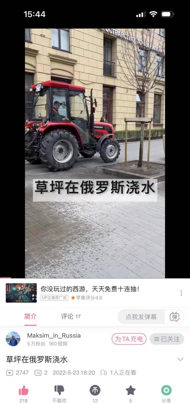 2022年3月底,名为马克西姆的国外小伙在B站发布了第一条视频。视频时长仅15秒,拍摄的是洒水车在草坪洒水的一幕,因为既不懂中文,英语也很糟糕,马克西姆通过机翻为视频取了个标题《草坪在国外浇水》。