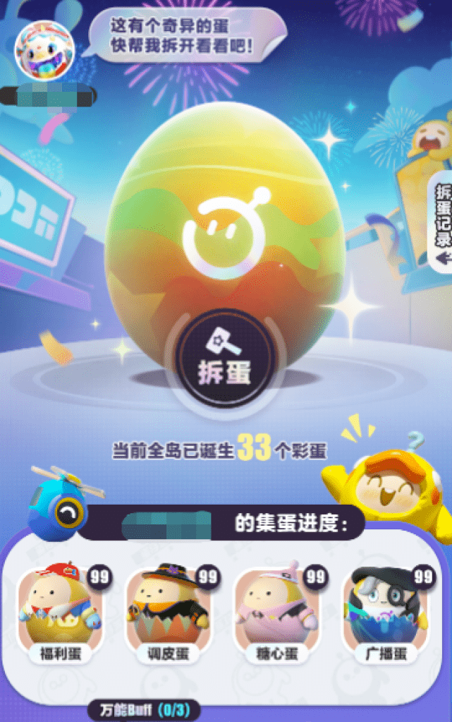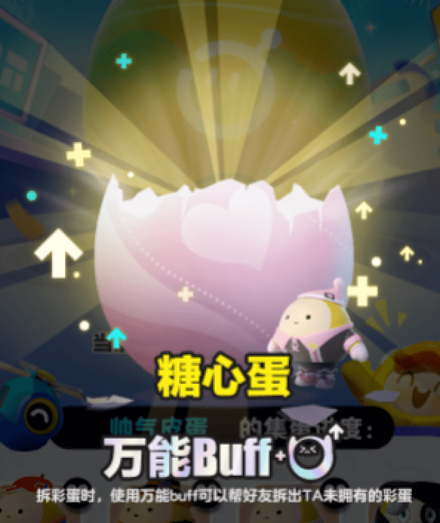 3.好友拆蛋过程中若欧气附体还会获得“万能buff”,使用“万能buff”帮助游戏玩家拆彩蛋,必定能拆出“TA”未曾集齐的彩蛋。