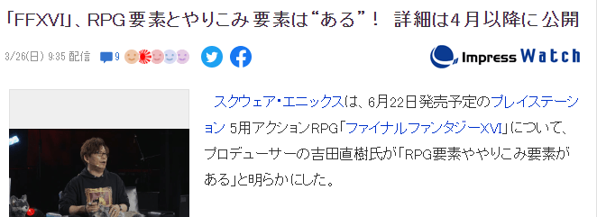 吉田确认《最终幻想16》有执迷要素 具体4月公开