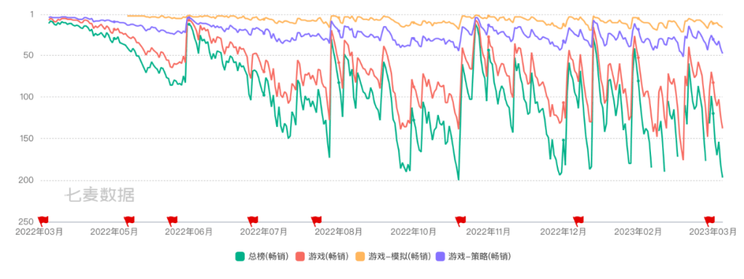 另一方面,上线新作大多没带来太多惊喜。主推新品的商业表现差强人意,尽管在发行早期能冲到高位,但后续的韧性稍欠。