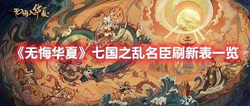 《无悔华夏》七国之乱是游戏中上线的一个新版本,玩家在这个剧本中会有新的历史和新的内容可以体验,可能有玩家还不清楚这个剧本的名臣都是在什么时候什么地点出现的,下面小编就给大家整理了具体的刷新表一览,一起来看看吧!