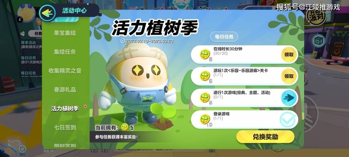 《蛋仔派对》为了这一场公益组织联动活动,在游戏内外分别设计了不同的主题活动供玩家们去参加游玩体验。游戏内玩家们可以通过完成简单的任务获取相关的任务币,然后用任务币去兑换植树节外观跟其他的道具。游戏之外,《蛋仔派对》邀请玩家在社交平台上面发布一些关于春天气息的照片,并会随机抽取参与公益项目的机会给到玩家们。