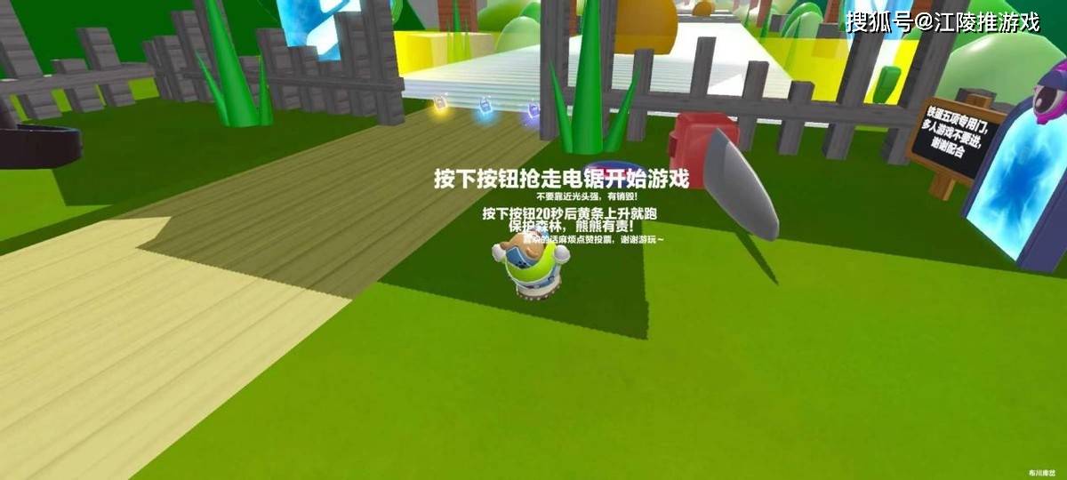 说到植树节主题地图——《保护森林,熊熊有责》也同样是如此,在许多玩家童年的回忆当中一定都会有熊出没,熊出没这一个经典动画片讲述的也是保护环境,需要先夺走光头强的电锯,阻止他继续破坏森林,随后就要赶快跑路,一路躲避各种机关。在这一个过程当中千万记住不要被光头强给抓到!