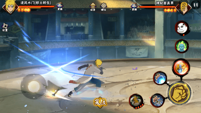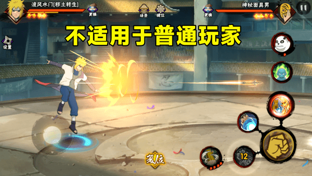 首先,秽土水门的技能机制很强,这个大家应该也都知道。最初的技能CD可以让你随意双闪,无论是否命中,我都可以再次闪回来,并且能够再用另外一个技能闪过去。虽然这个效果非常还原动漫中波风水门来去自如的特性,但真正放到游戏中确实会影响到玩家体验,因为你几乎很难抓到秽土水门的前后摇。再加上他在释放了三次技能以后还会刷新出一个独立CD的金身技能,也让他的短期爆发输出有了一定的提升。至于奥义的话,伤害确实不高,但好在可以接技能,并且中间会有抓取效果,可以消耗一定的霸体时间。